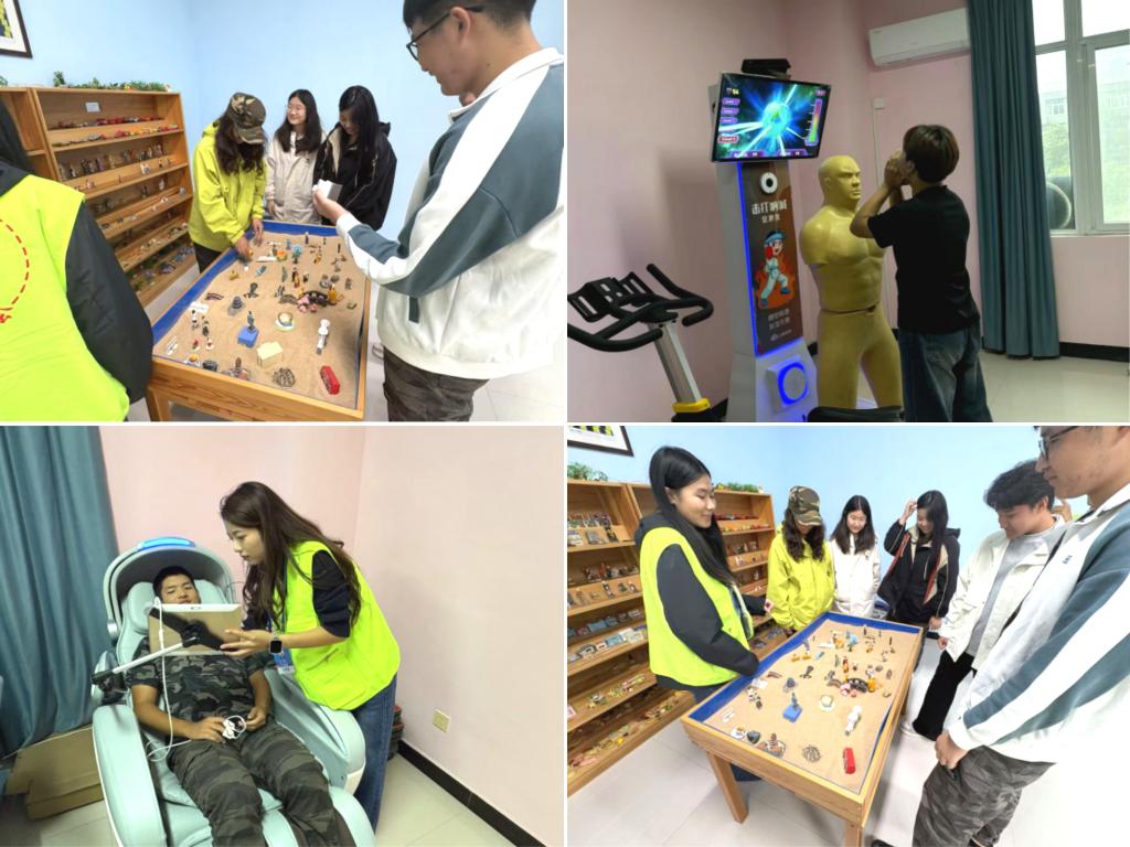 活动现场,在朋辈讲解员的引导下,新生们依次参观了心理咨询室、沙盘治疗室、情绪宣泄室等功能区域。通过VR心理放松设备体验、团体辅导活动模拟等互动环节,同学们直观了解到心理服务的科学性与趣味性。2025级电气自动化技术5班学生孟梓硕表示:原来心理咨询不是‘有病才需要’,就像定期体检一样,是关爱自己的正常方式。