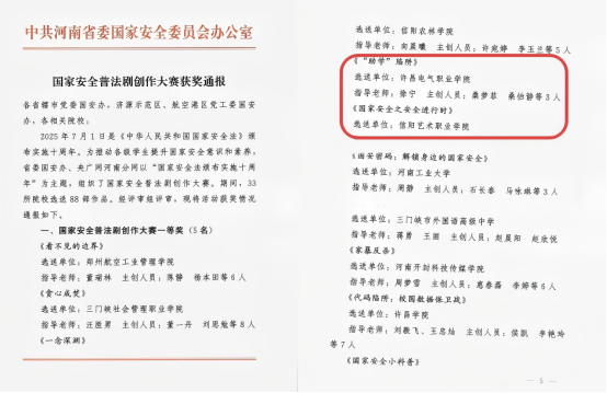 近日,中共河南省委国家安全委员会办公室公布了国家安全普法剧创作大赛获奖名单。许昌电气职业学院财经与电商学院选送的作品《“助学”陷阱》在88部作品中脱颖而出,荣获大赛三等奖。