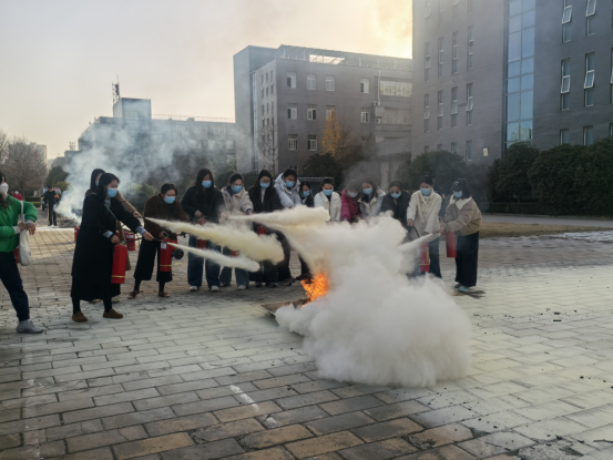 下午3点,演练正式开始。发出紧急救援疏散命令后,各工作组迅速到岗待命。疏散过程中,师生配合默契、行动规范,大家“低头弯腰、捂住口鼻、有序前行”,严格按照预定路线快速撤离,最终共同汇合至宋应星广场。灭火实操环节是本次演练的亮点,灭火抢险组人员率先示范,详细讲解灭火器“提、拔、握、压”使用要领及消防栓水带连接技巧,并组织师生代表分组进行灭火实操演练。大家踊跃参与,在专业指导下完成模拟火情扑救,切实掌握了消防器材使用技能。