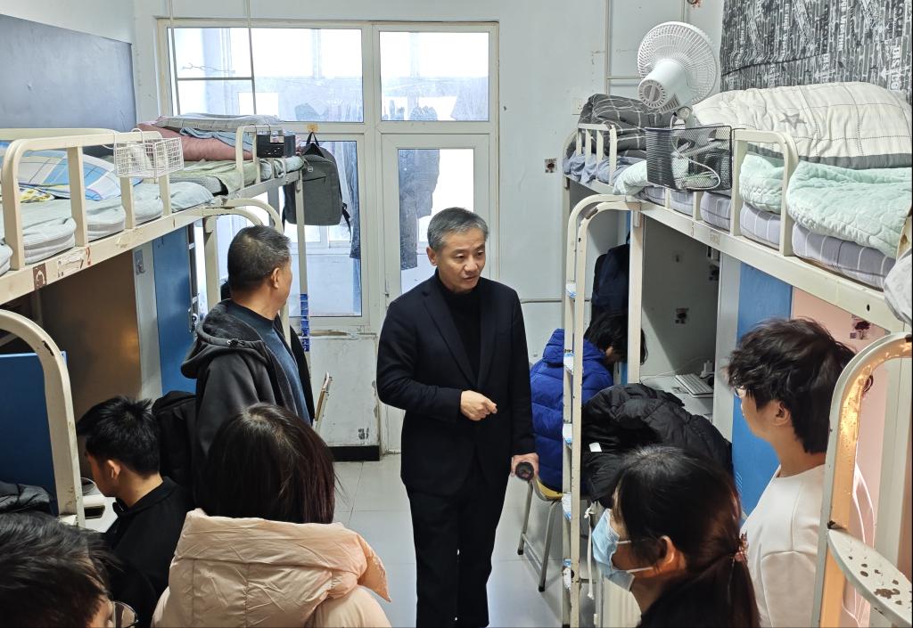 检查期间,副院长朱东煜与宿舍内学生进行了亲切交谈。他关切地询问学生的住宿生活情况,叮嘱大家在日常学习生活中要多走出宿舍参与体育锻炼,增强身体素质;要持续保持宿舍卫生整洁,共同维护良好的居住环境;要注重与室友之间的沟通交流,营造和谐融洽的宿舍人际关系;同时鼓励学生充分利用课余时间参与志愿服务、社团活动等有意义的活动,全面提升自身综合素质。