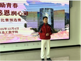 为深入学习贯彻党的二十大精神,弘扬伟大爱国精神,传递国家资助政策温暖,展现资助育人成效,12月4日,信息工程学院成功举办“自强励青春,感恩润心田”主题演讲比赛预选赛。本次赛事既是校级决赛的重要选拔环节,也为全院学子搭建了抒发感恩之情、践行报国之志的优质平台。