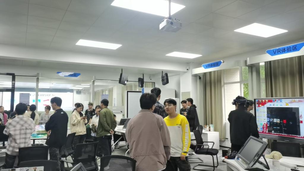 最后,在互动交流环节,数字媒体技术、虚拟现实技术应用专业往届参加比赛的学长学姐交流了在校学习生活、备赛情况和心得,并带领新生体验团队自主研创的作品。同学们也踊跃提问,就专业学习难点、所需软硬件技能、比赛和备赛情况等关心的问题进行了深入交流。