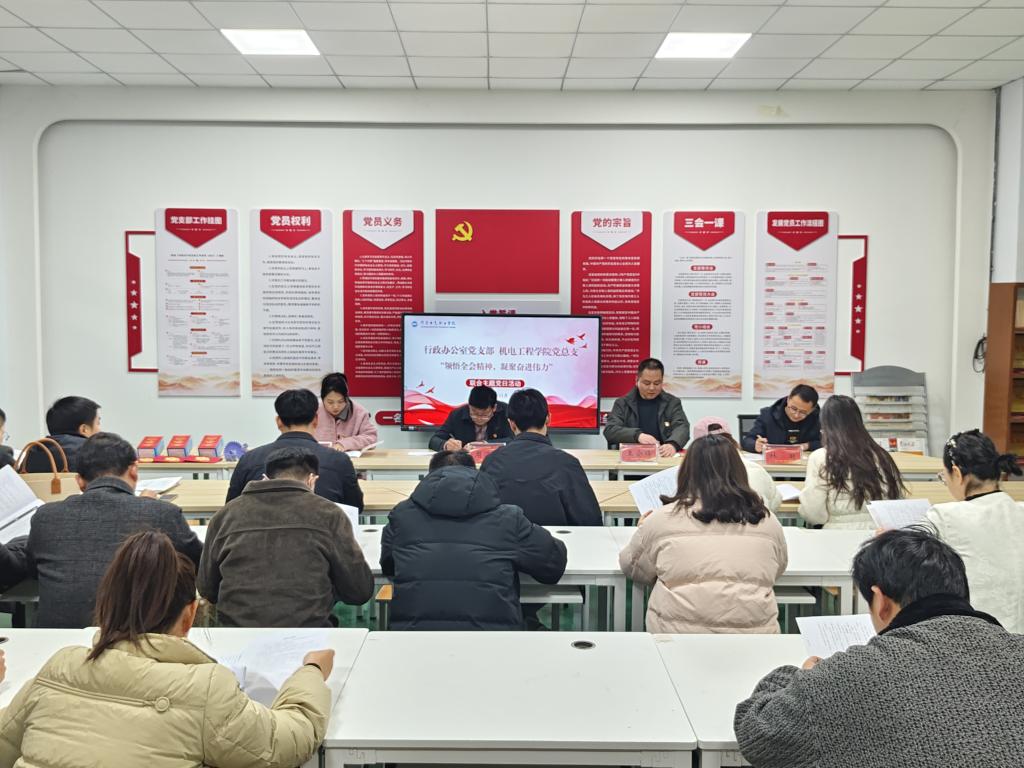 为“打破组织壁垒、搭建沟通桥梁、筑牢情感纽带”,笃力构建“资源共享、优势互补、同频共振、互促共进”的党建工作新格局,从而将基层党组织活动进一步向纵深推进,2025年11月26日,行政办公室党支部与机电工程学院党总支联合举办11月主题党日活动。本次活动聚焦“党的二十届四中全会精神”专题学习,深挖党建与事业发展融合点,强化党员干部先锋模范战斗力,激活支部党员同志干事热情,共同筑牢基层党组织战斗堡垒,建设“有温度,有方向,有力量”的中心工作联合堡垒哨所。