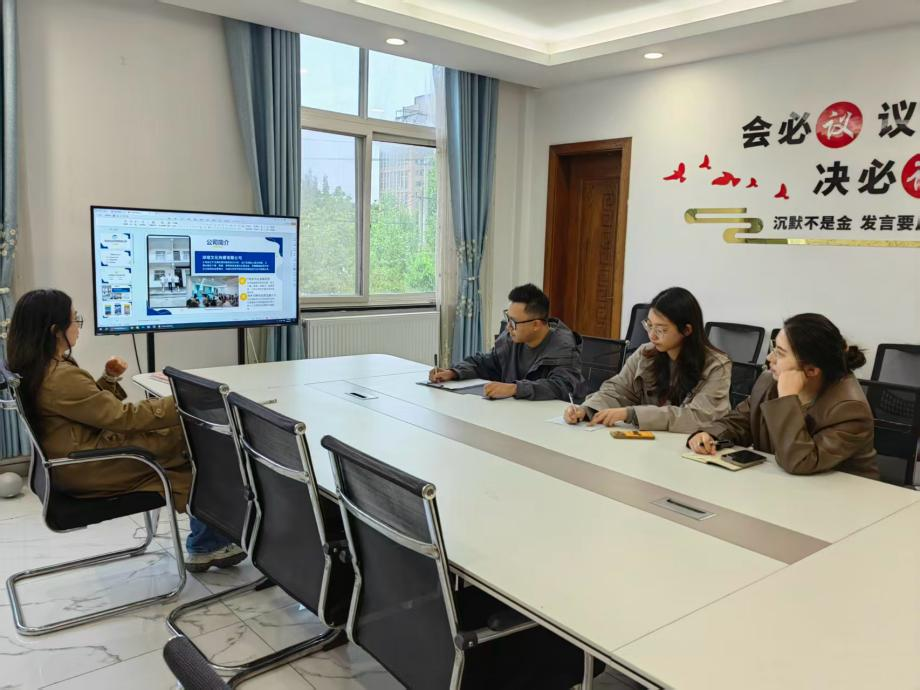 随后,双方围绕校企合作的具体方向展开深入探讨。就业创业指导科科长田兴亮介绍了学院的专业建设情况、人才培养特色及毕业生就业工作开展现状,希望以此次走访为契机,推动校企双方在共建新媒体实训基地、开发实训课程、企业导师授课、订单式人才培养与就业直通车项目等方面开展深度合作,实现学校培养与行业需求的精准对接。专业教师也结合教学实际,就学生专业学习、实践能力培养、岗位适配性等问题与企业方进行了细致沟通,认真听取了企业对学院人才培养方案优化的意见和建议。