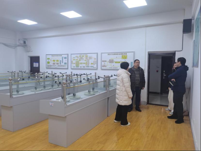 学院书记、院长带领检查组,严格遵循“实地查看、逐项核实、现场问询”的原则,先后对财税一体化实训室、会计手工实训室、数智模拟实训室、新建验收的岗课赛正一体化实训中心等重点场所进行了深入检查。检查组仔细查验了消防设施、电气线路、仪器设备、安全通道及环境卫生等方面,不放过任何细节。