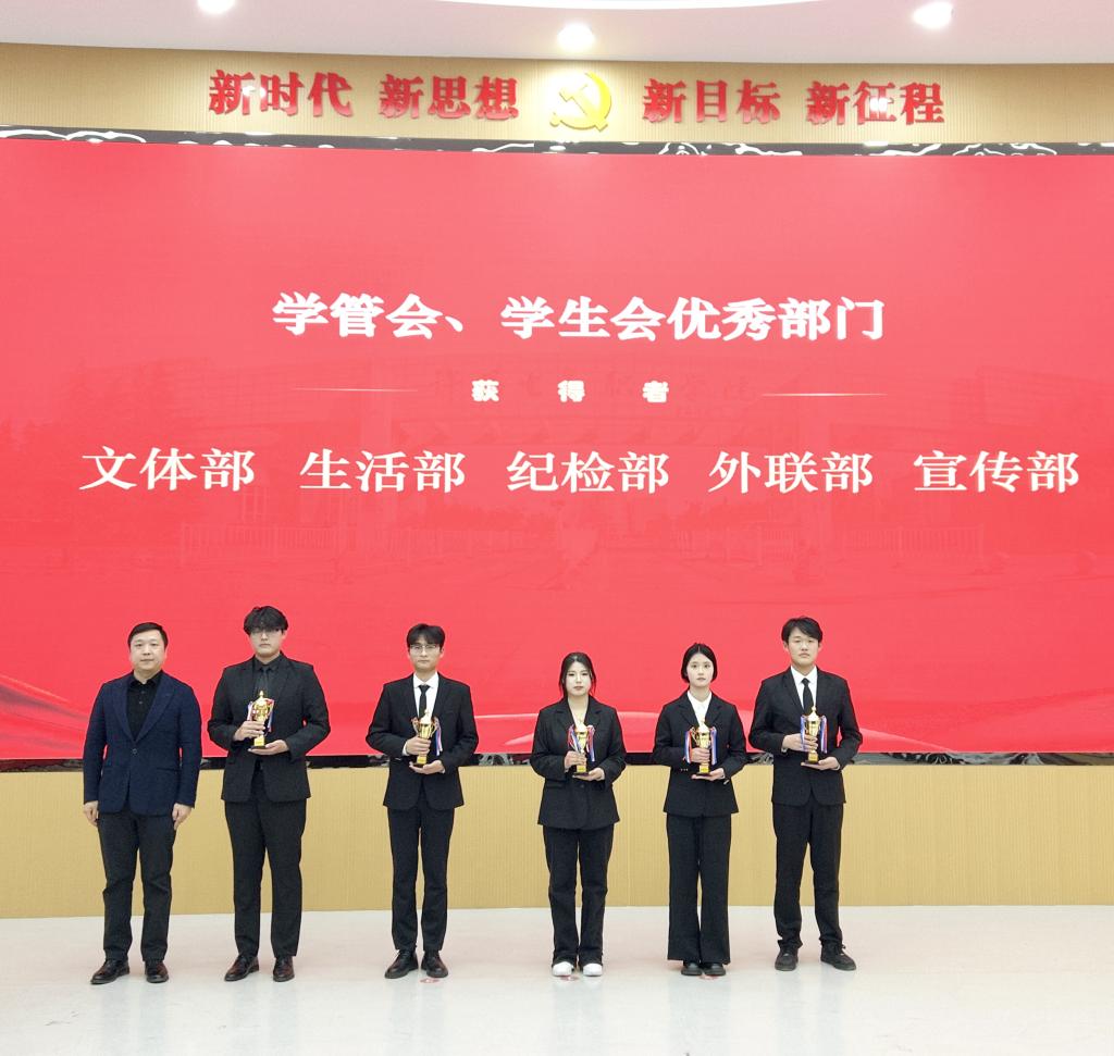 在热烈的掌声中,获奖个人与集体代表依次登台,学院领导及老师代表依次为他们颁发荣誉证书与奖杯。闪光灯下,一张张青春的脸庞洋溢着自豪与喜悦,这份荣誉不仅是对过往努力的肯定,更是对未来前行的鞭策。