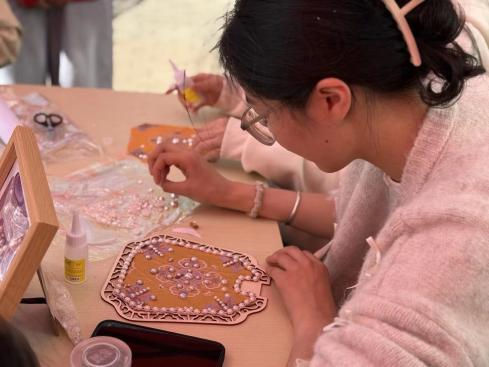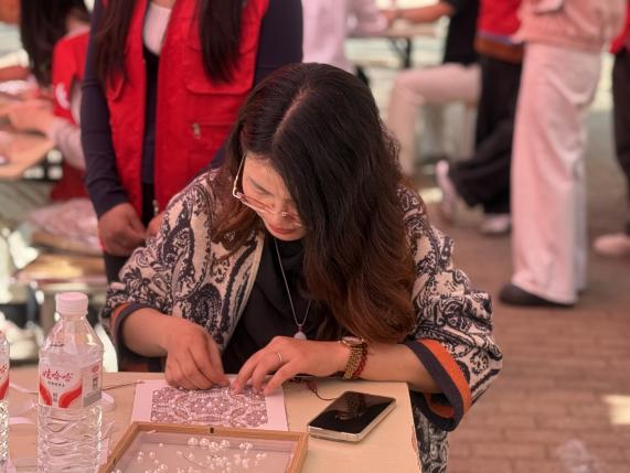 为进一步丰富校园文化生活,将美育教育与传统文化传承深度融合,4月1日下午,财经电商学院在宿舍楼CD连廊路西侧大道开展非遗宋锦珍珠画体验活动,活动吸引众多学子踊跃参与,大家在指尖的精细创作中领略非遗魅力,在沉浸式的手工体验中涵养匠心。