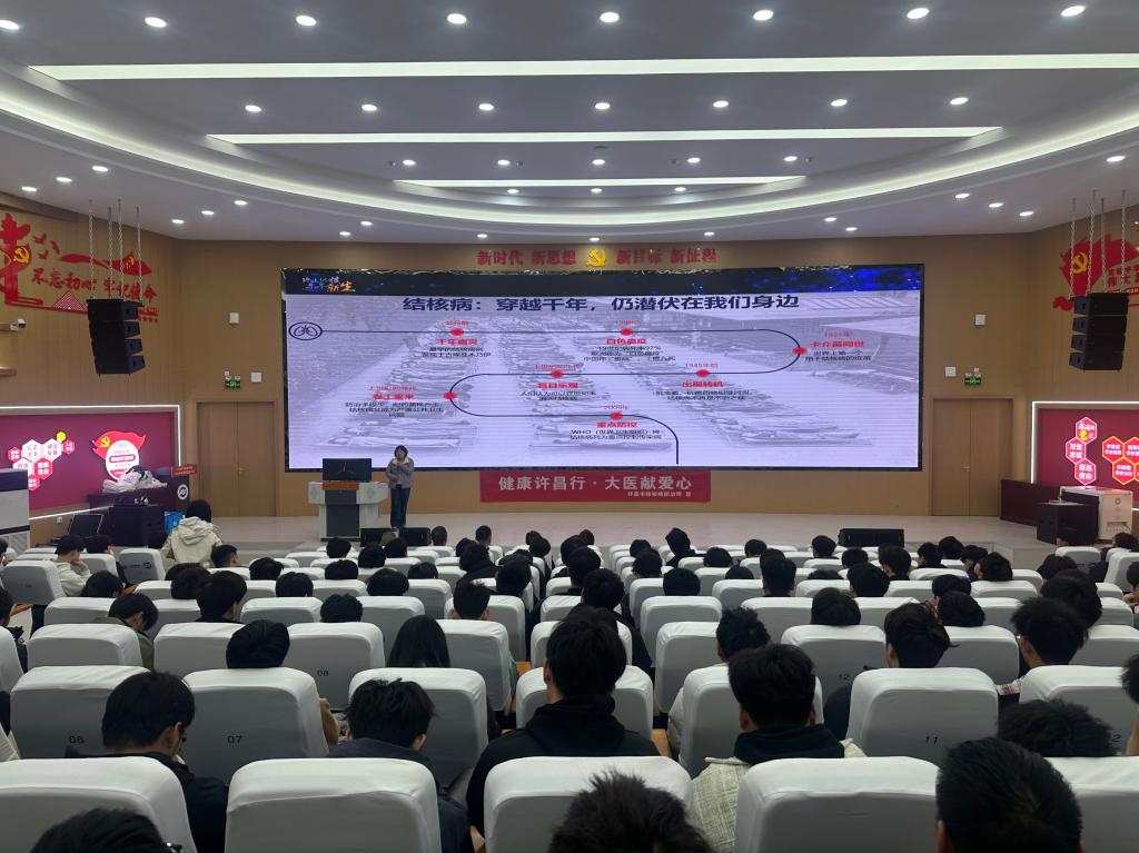 本次活动由学生处、机电工程学院、后勤服务中心联合主办,许昌电气学院党委委员、工会主席张贵军,许昌市结核病防治所副所长宁博等领导参加讲座,许昌市结核病防治所宁红晓主任受邀主讲,数百名师生代表齐聚一堂,共学防治知识,共筑健康校园。