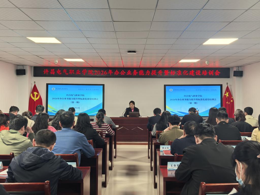 在“十五五”规划开局起步、全党深入开展树立和践行正确政绩观学习教育、推动作风建设走深走实的重要节点,为进一步夯实学校内部管理基础,提升校属各单位办公人员业务素养与履职能力,推动办公业务流程标准化、规范化、精细化建设,4月15日下午,许昌电气职业学院第一期办公业务能力提升暨标准化建设培训会在第三会议室顺利举行。校属各单位负责人及负责办公业务的工作人员参加培训。