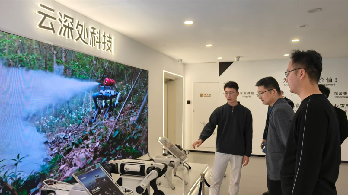 随后,走访团一行前往杭州云深处科技股份有限公司。企业负责人带领走访团参观了产品展示区和研发车间,详细介绍了公司的技术优势、产品体系及人才发展平台,重点阐述了企业在人工智能、软件开发、智能控制等领域的人才缺口,尤其对具备跨界思维和实践能力的信息类专业人才需求迫切。双方就校企合作模式、课程体系优化、企业导师进校园、毕业生实习就业等方面达成初步共识,约定将进一步细化合作方案,推动产教融合、科教融汇落地见效。