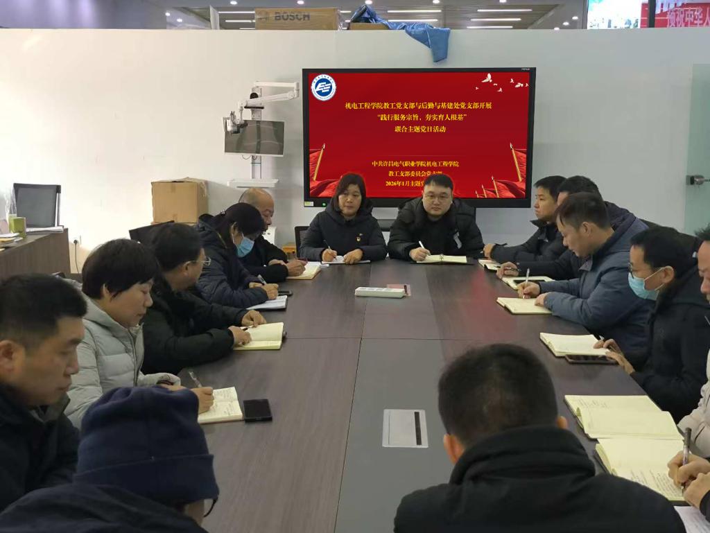 为打破部门壁垒、凝聚协作共识,构建“党建引领、资源共享、服务联动、互促共进”的党建工作新格局,切实将基层党组织的政治优势、组织优势转化为服务师生、助推学校发展的实际效能,1月22日,机电工程学院教工党支部与后勤与基建处党支部联合举办“践行服务宗旨,夯实育人根基”主题党日活动。活动聚焦“服务”核心,紧扣“育人”根本,通过理论学习、实践交流、实地调研等多元形式,强化党员服务意识,提升协同工作能力,共同筑牢服务学校发展、助力人才培养的坚强战斗堡垒。